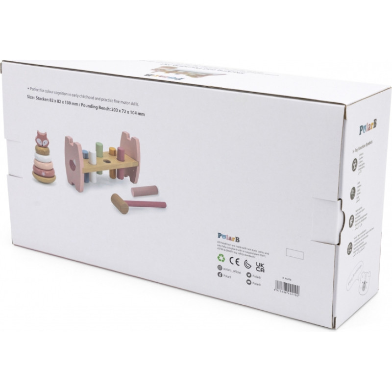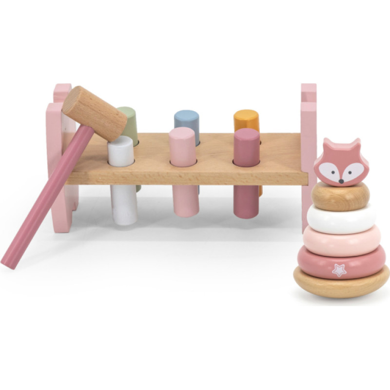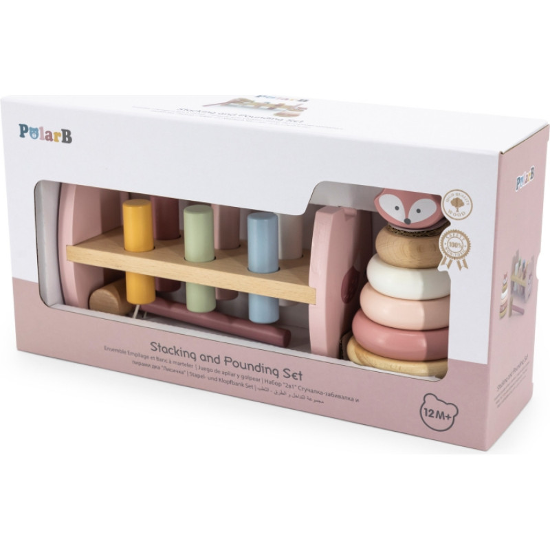 Viga Toys VIGA PolarB Set Wooden Pyramid + Punch with Hammer Fox Montessori