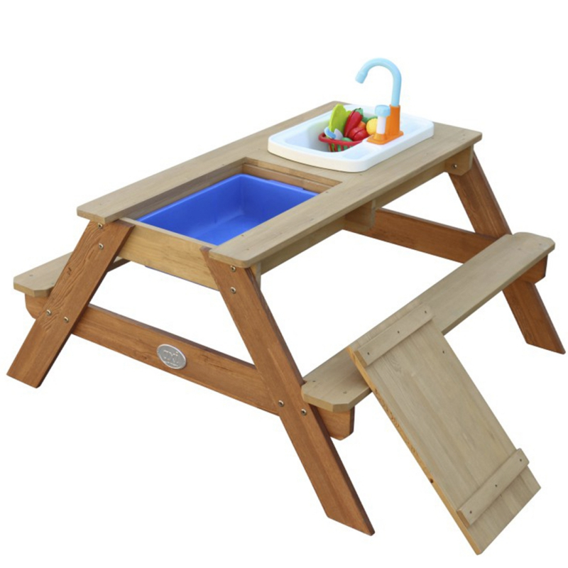 AXI Emīlijas piknika galds ar soliņu un jaucējkrānu darbināmu izlietni un ūdens/smilšu traukiem