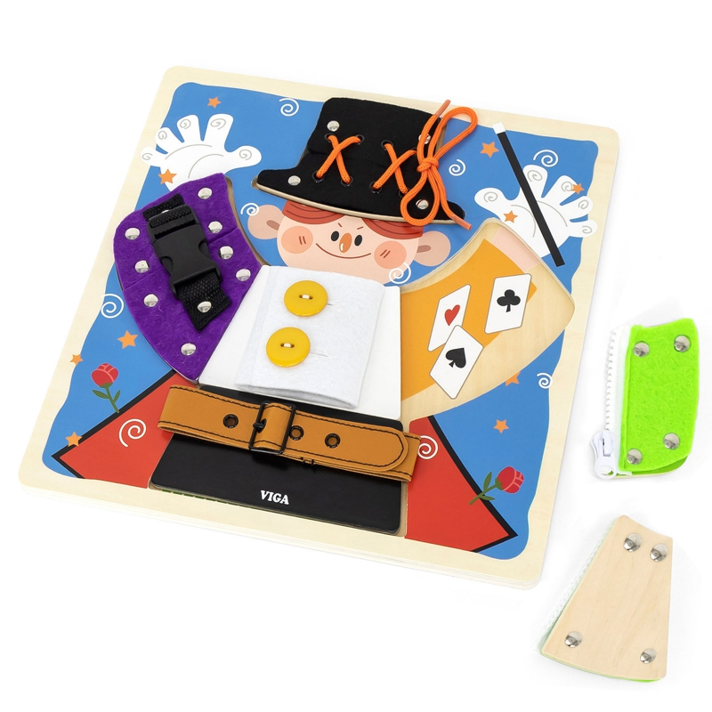 Viga Toys VIGA koka manipulācijas dēļu sprādzes, slēdzenes Magik Monstessori