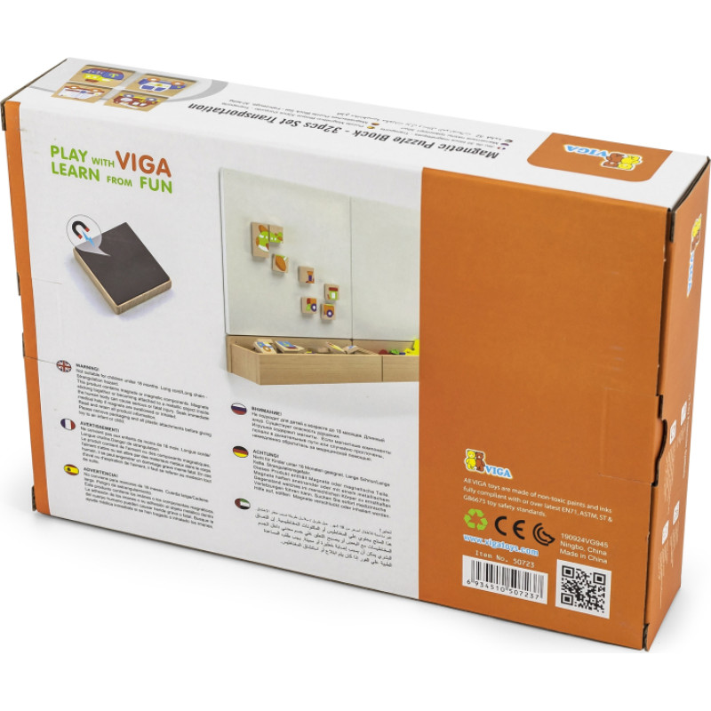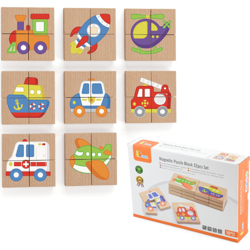 Viga Toys Viga Koka puzle, magnētiskā puzle - transportlīdzekļi, FSC sertifikāts
