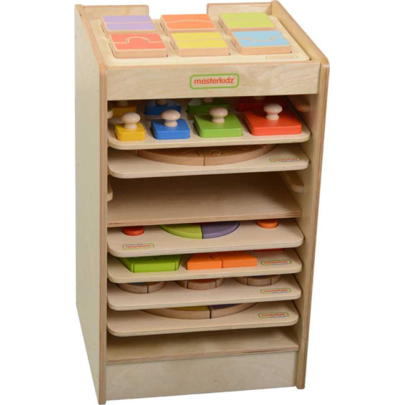 Masterkidz Skapis mācību dēļu un spēļu uzglabāšanai, 10 gab., ritenīši