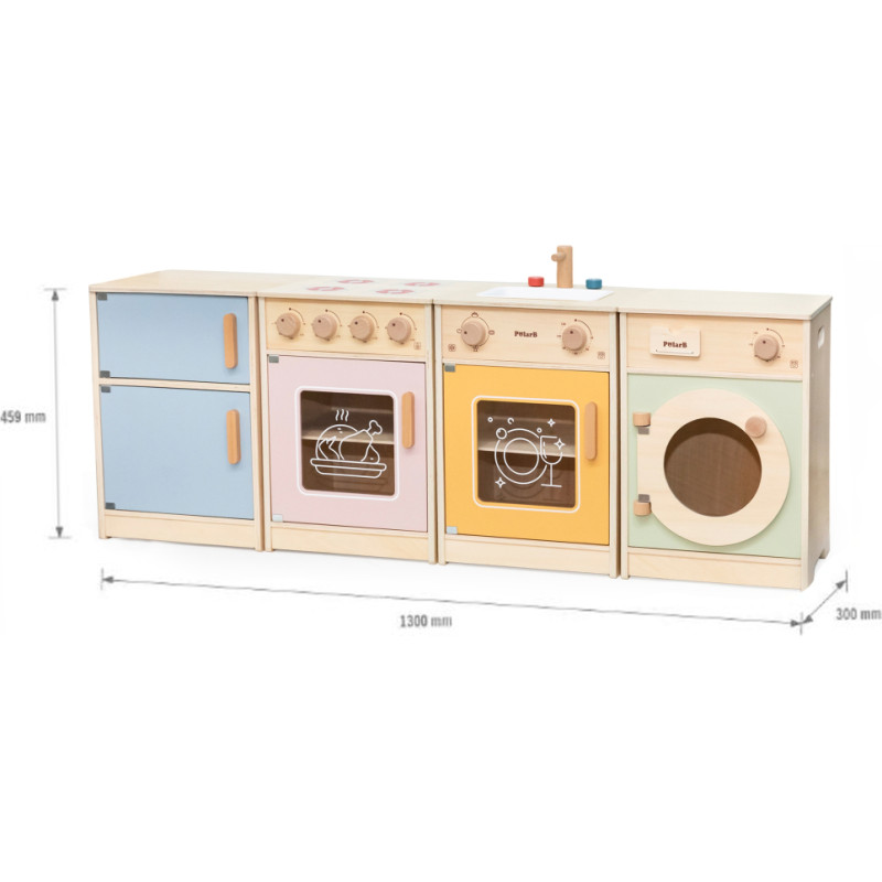 Viga Toys VIGA PolarB Koka virtuves komplekts XL Veļas mašīna Plīts Trauku mazgājamā mašīna