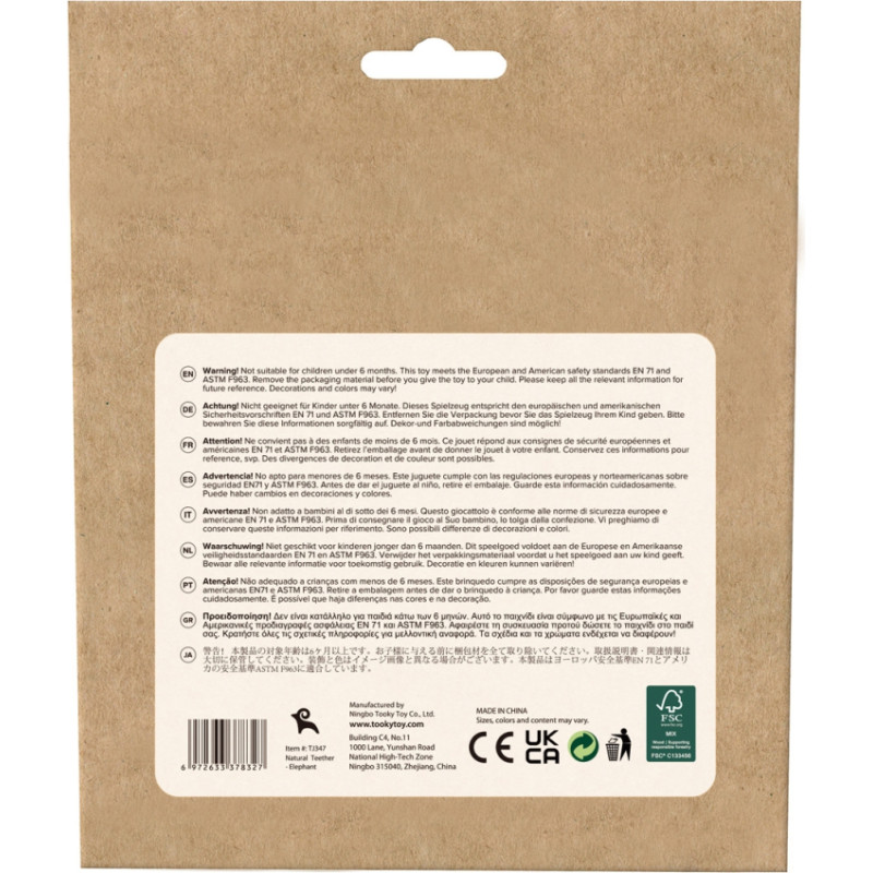 Tooky Toy Koka gredzens ziloņu zobs