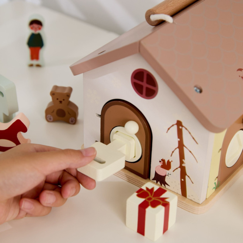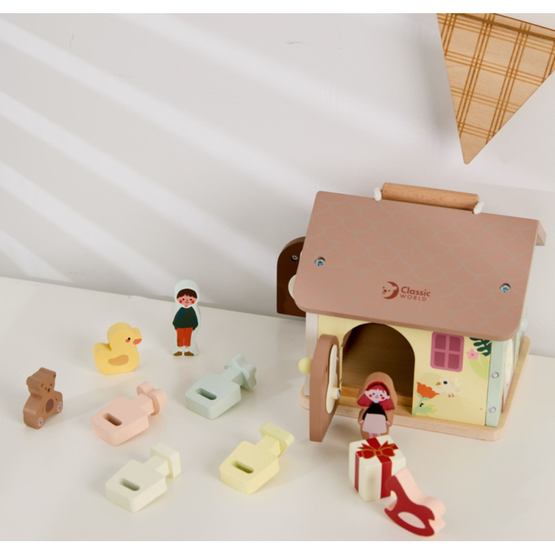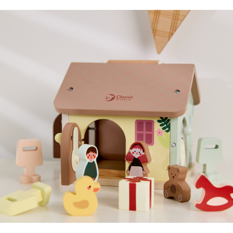Classic World Drewniany Domek Sensoryczny Edukacyjny z Zamkami Kluczykami 11el.