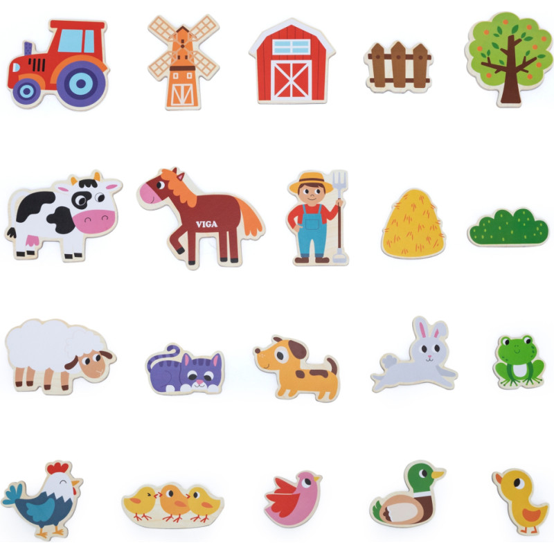 Viga Toys VIGA Magnetyczni Przyjaciele z Farmy 20 szt. Magnesów – Kreatywna Zabawa z Wiejskimi Zwierzątkami