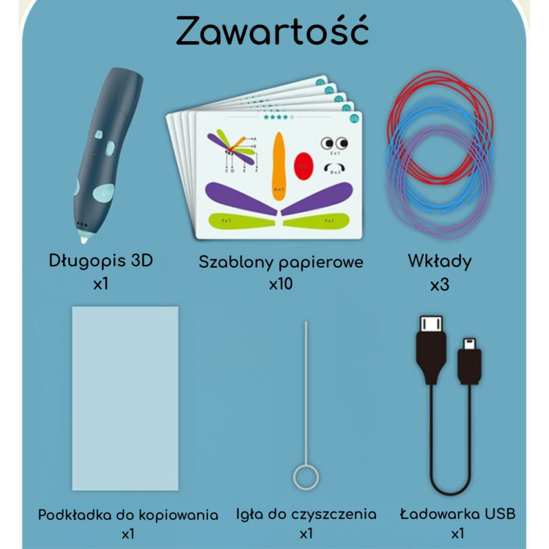 Woopie 3D Drukarka-Długopis Pen Bezpieczny Wkłady Usb