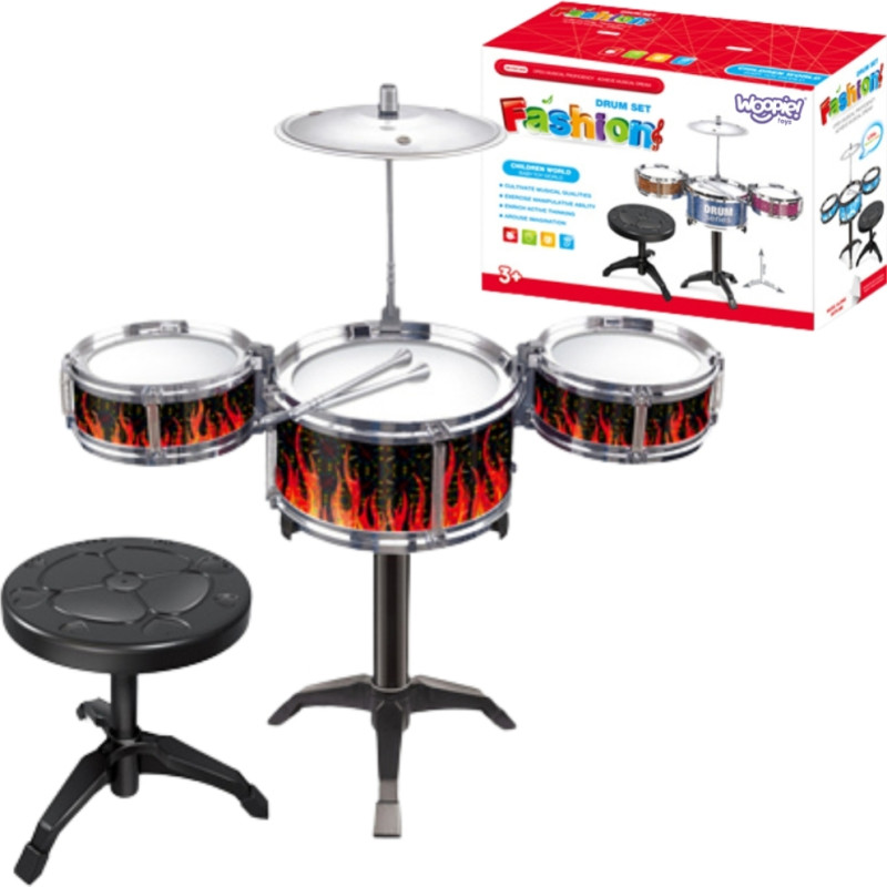 Woopie Perkusja Edukacyjna dla Dzieci 3 Bębny 1 Talerz + Taboret