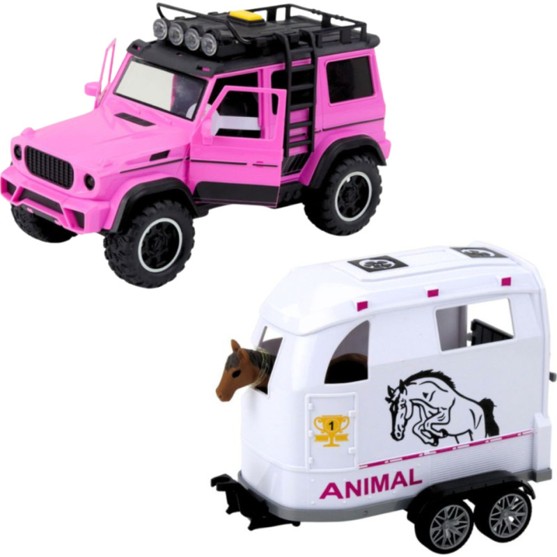 Woopie Zestaw Różowy Samochód Terenowy z Przyczepką i Figurką Konia