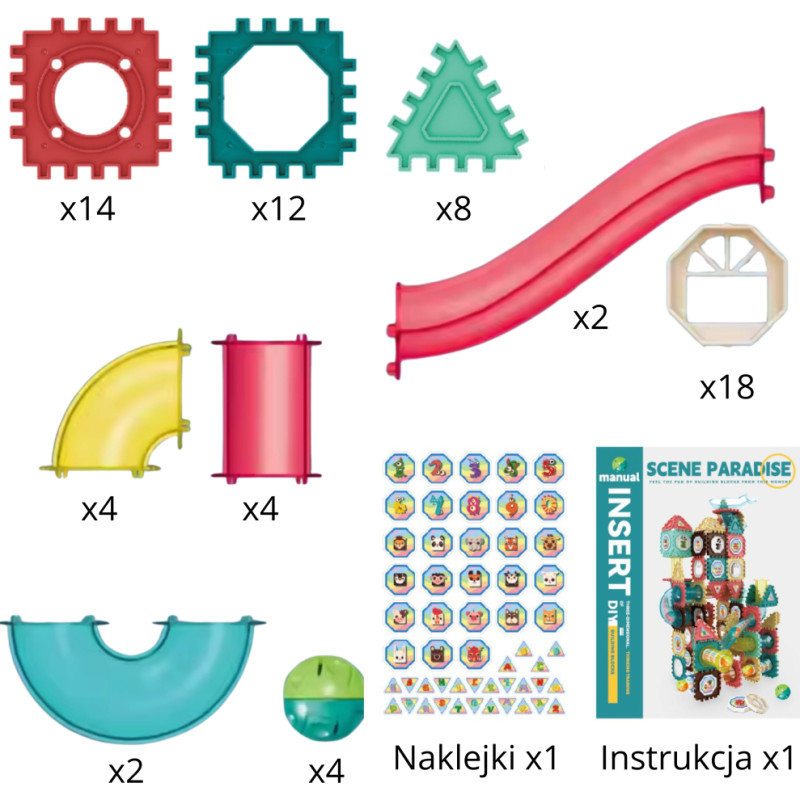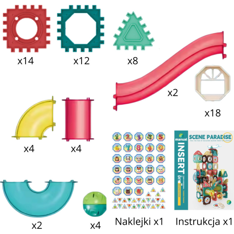 Woopie Klocki Konstrukcyjne 3D Zestaw Edukacyjny Tor Kulkowy Kulodrom Wafle 68el.