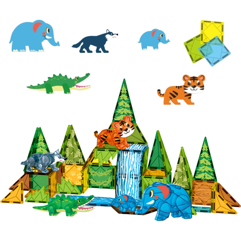 Woopie Klocki Magnetyczne Konstrukcyjne 3D Zestaw Edukacyjny Zwierzęta Dżungli 45el.