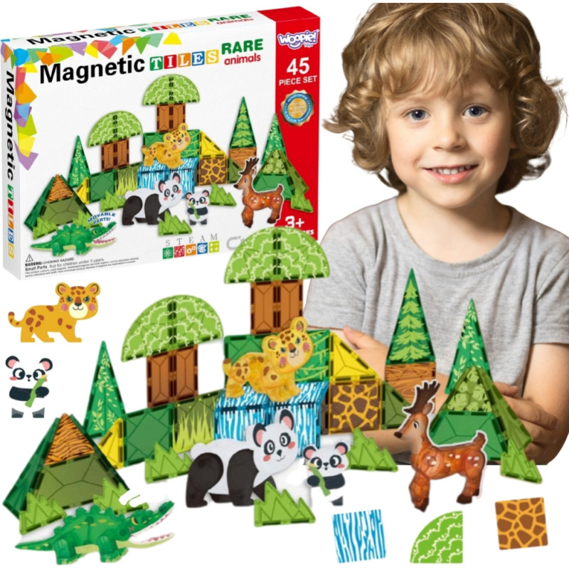Woopie Klocki Magnetyczne Konstrukcyjne 3D Zestaw Edukacyjny Rzadkie Zwierzęta 45el.