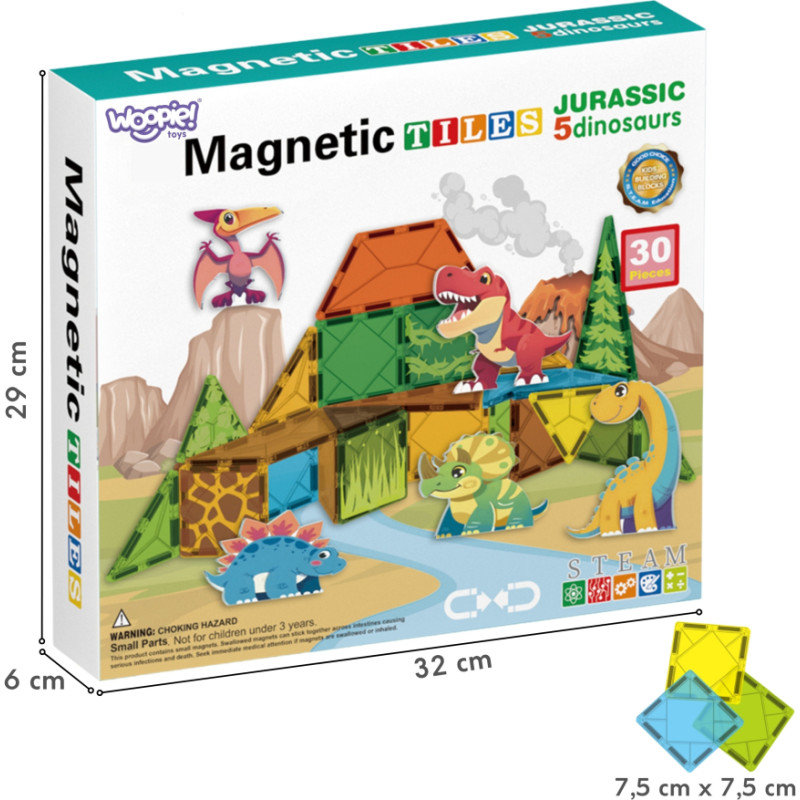 Woopie Magnetyczne Klocki Konstrukcyjne 7,5 cm Dino 30 el.