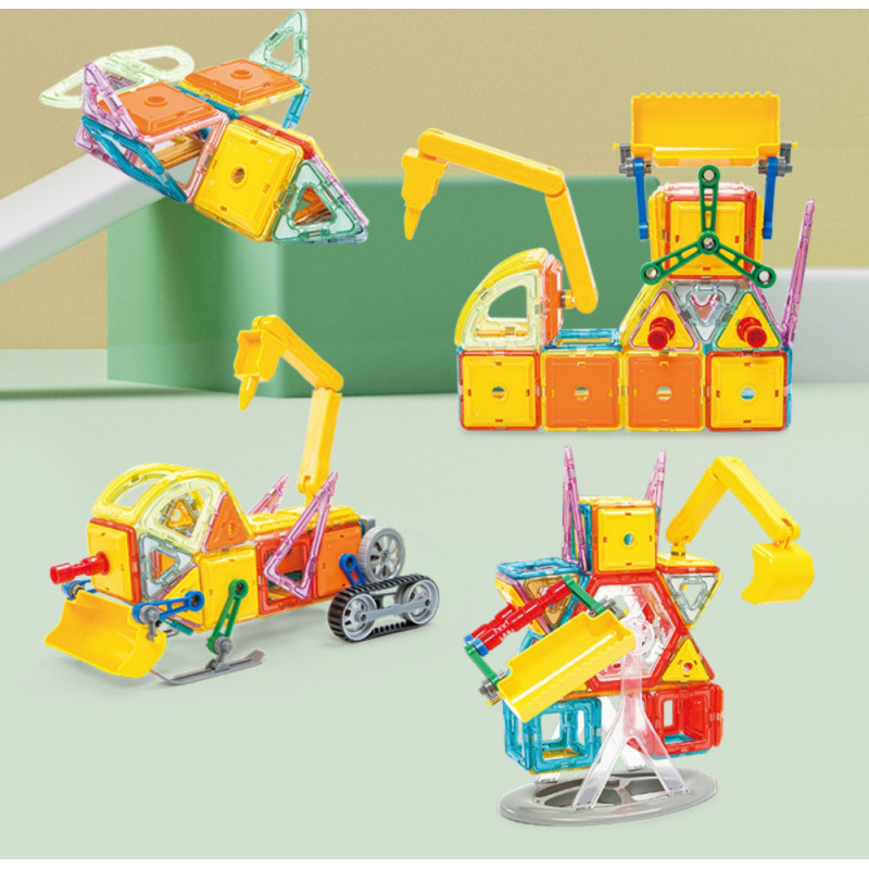 Woopie Klocki Magnetyczne Kolorowe 3D Pojazdy Zestaw STEAM 80el.