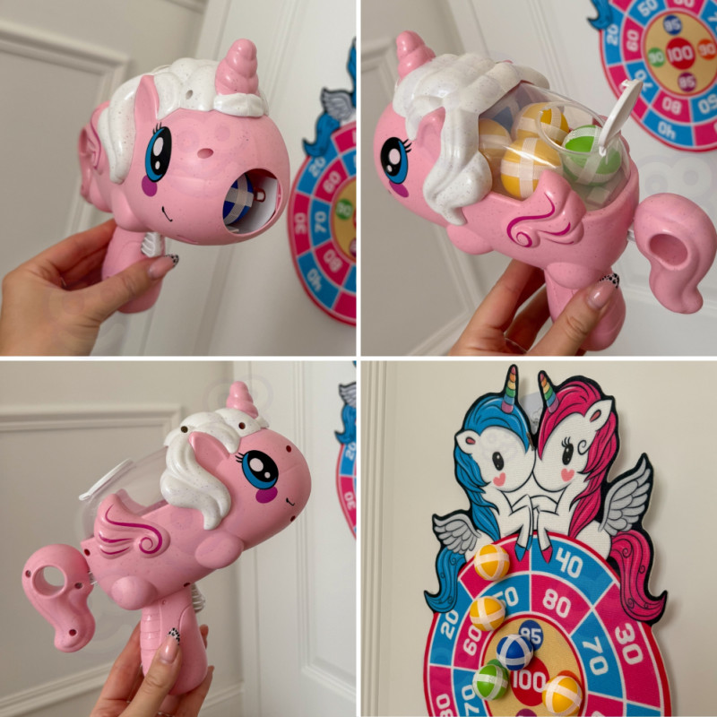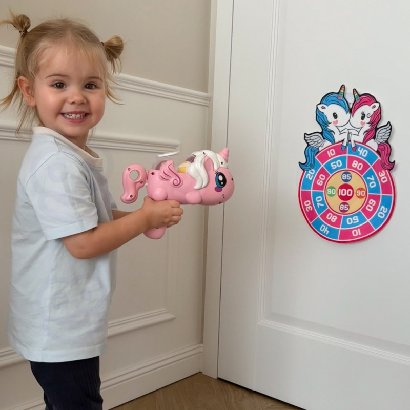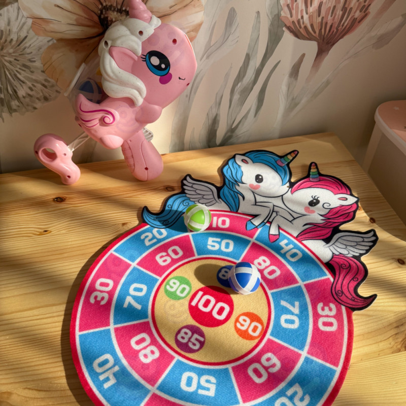 Woopie Gra Zręcznościowa w Rzutki na Rzepy Zestaw 2w1 Tarcza Wyrzutnia Jednorożec