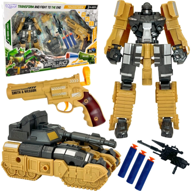 Woopie Zestaw 3w1 Robot Transformujący Czołg i Wyrzutnia na Strzałki Brązowy