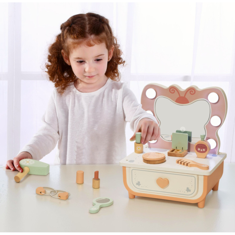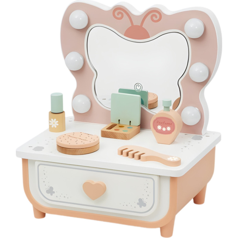 Tooky Toy Drewniana Toaletka Motyl Akcesoria Lustro z Oświetleniem LED + Kosmetyki