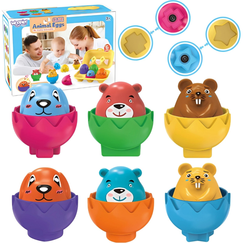 Woopie Układanka Sorter Montessori Dopasuj Kształty Wesołe Zwierzaki Jajka 6szt