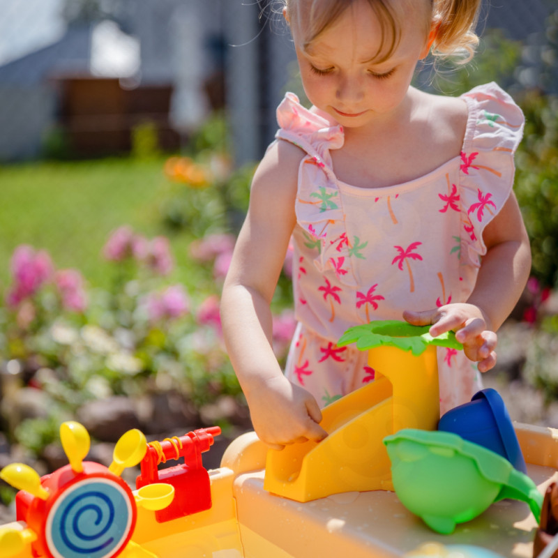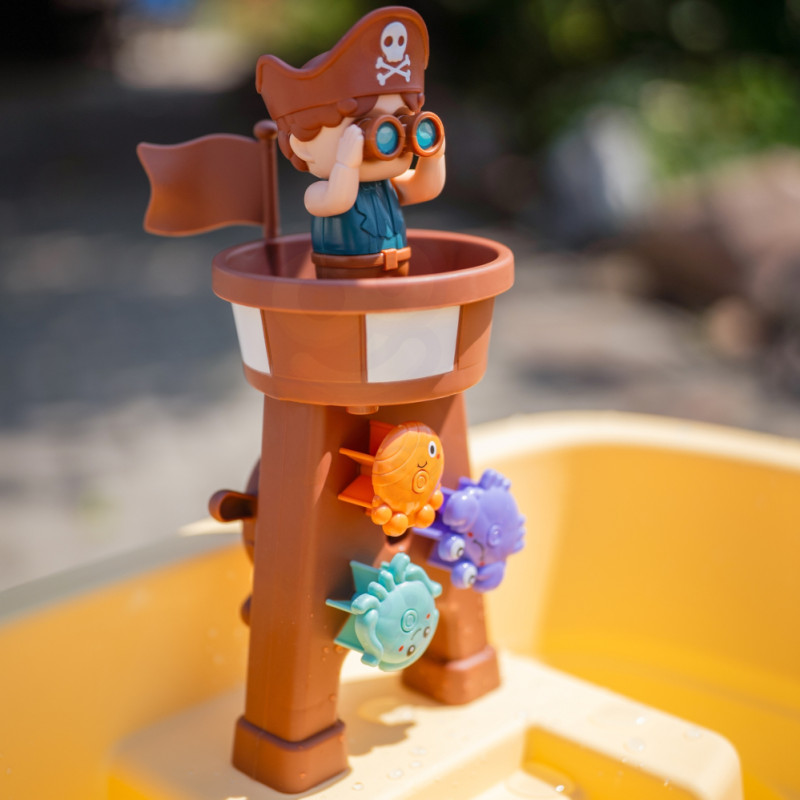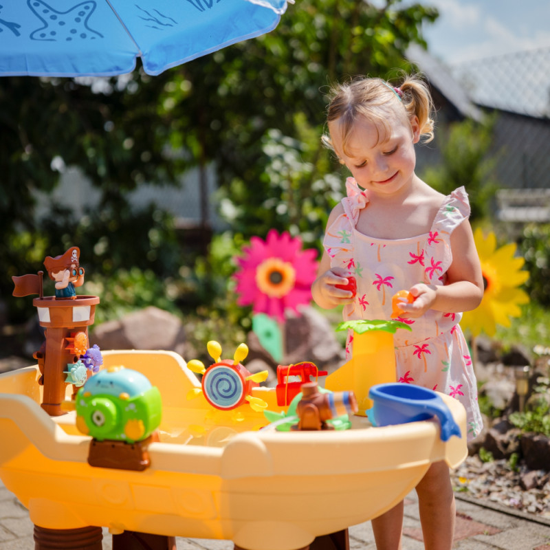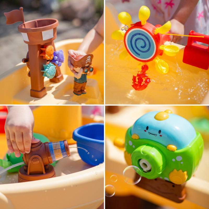 Woopie Stolik Wodny 2w1 Piaskownica Statek Piracki z Parasolem XL z Maszyna do Robienia Baniek Mydlanych