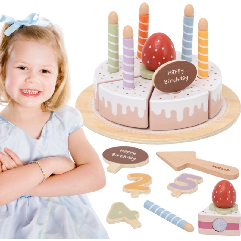 Viga Toys VIGA Drewniany Tort Urodzinowy do Krojenia