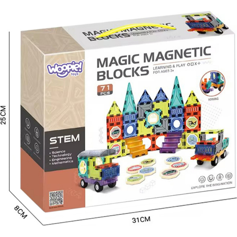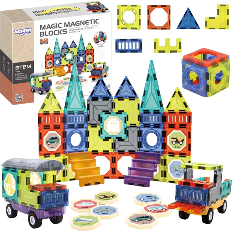 Woopie Klocki Magnetyczne 3D Zestaw Zamek Pojazdy 71el.