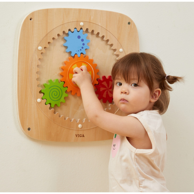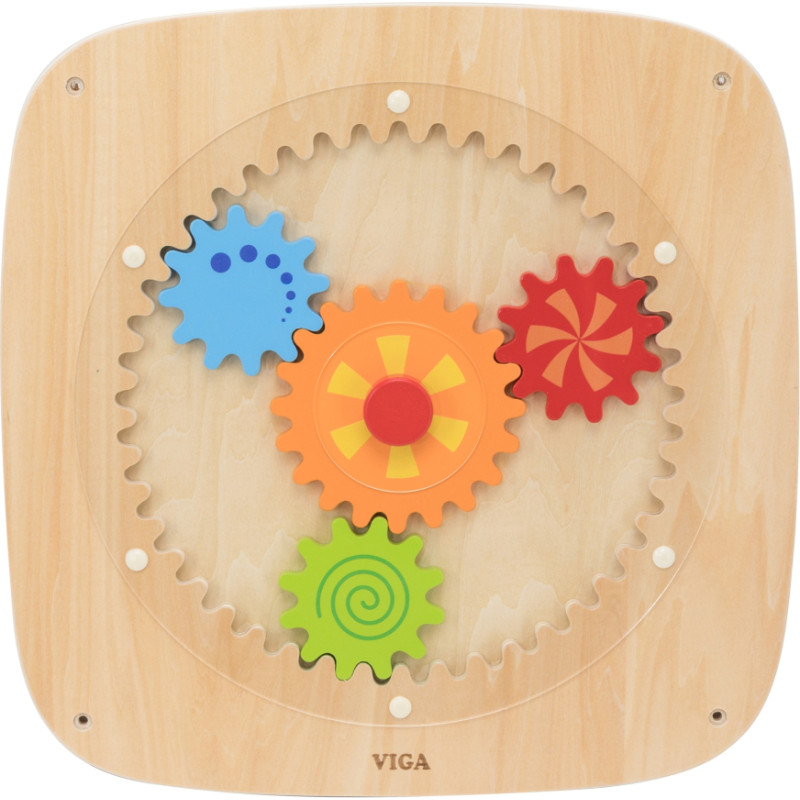 Viga Toys VIGA Drewniana Tablica z Kolorowymi Kołami Zębatymi