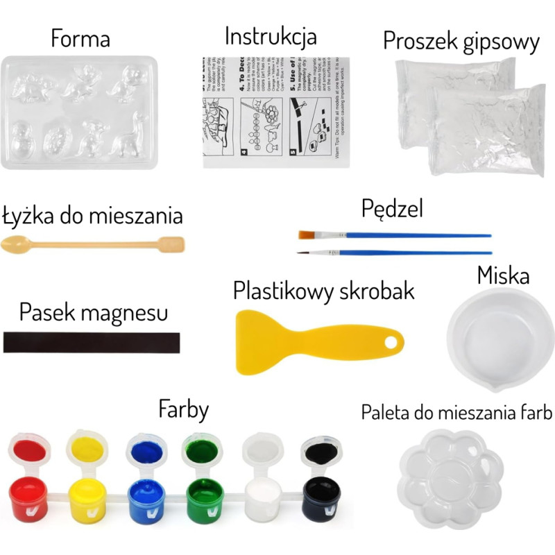 Woopie Zestaw Kreatywny z Farbami DIY Zrób Odlewy Gipsowe Figurki i Pomaluj - Zestaw Dinozaury