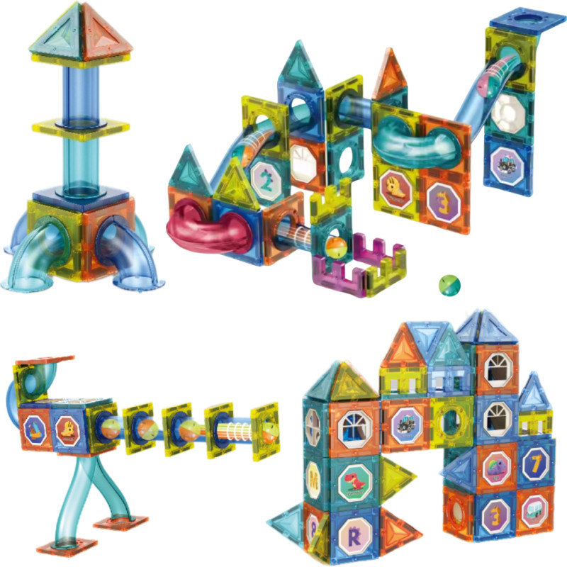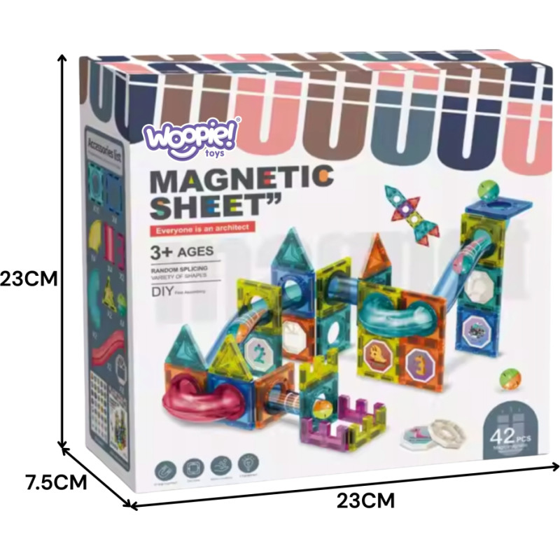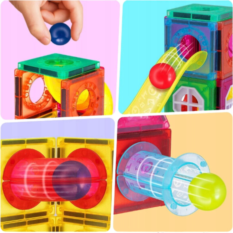 Woopie Klocki Magnetyczne Konstrukcyjne 3D Zestaw Edukacyjny Tor Kulkowy Kulodrom 42 el.
