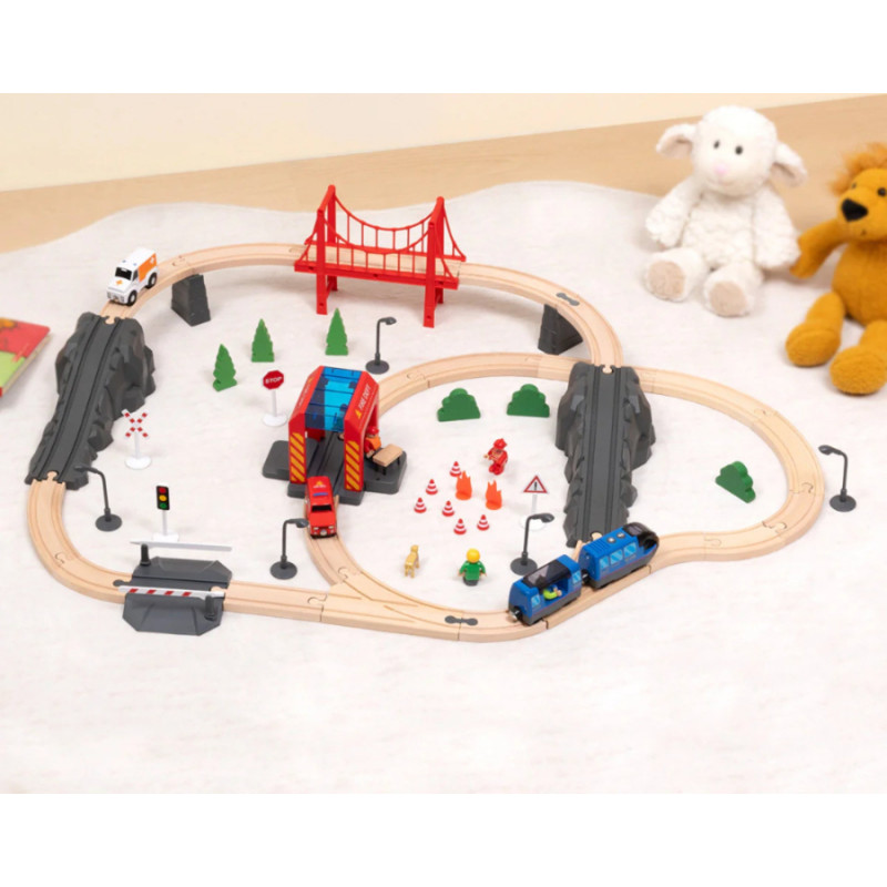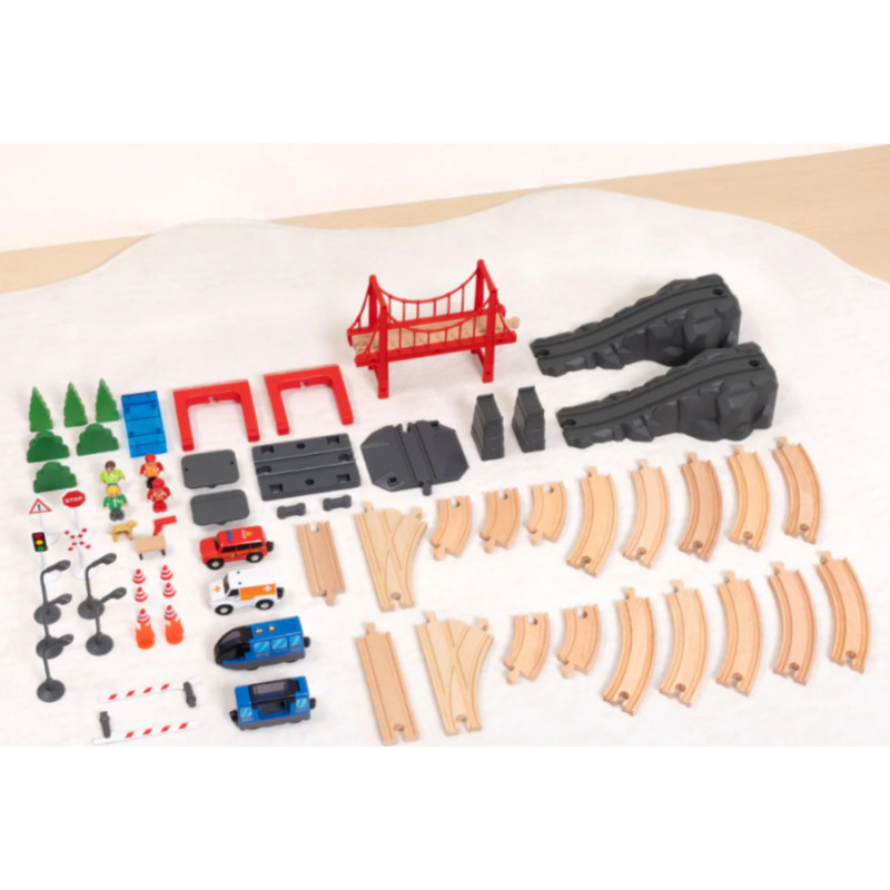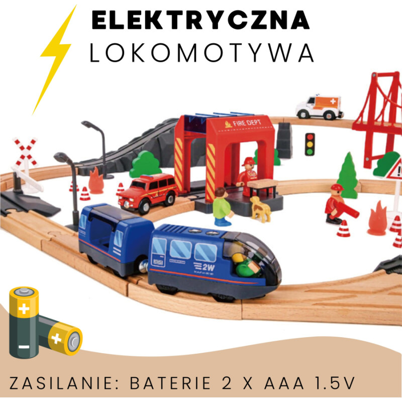 Tooky Toy Drewniana Kolejka Elektryczna Straż Pożarna Efekty Dźwiękowe 70 el. FSC