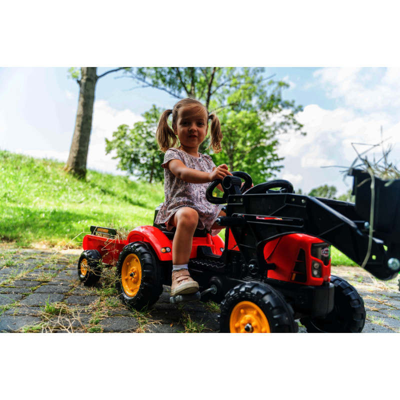 Falk Supercharger Tractor Red Opening Hood with Trailer + Bucket From 2 Years