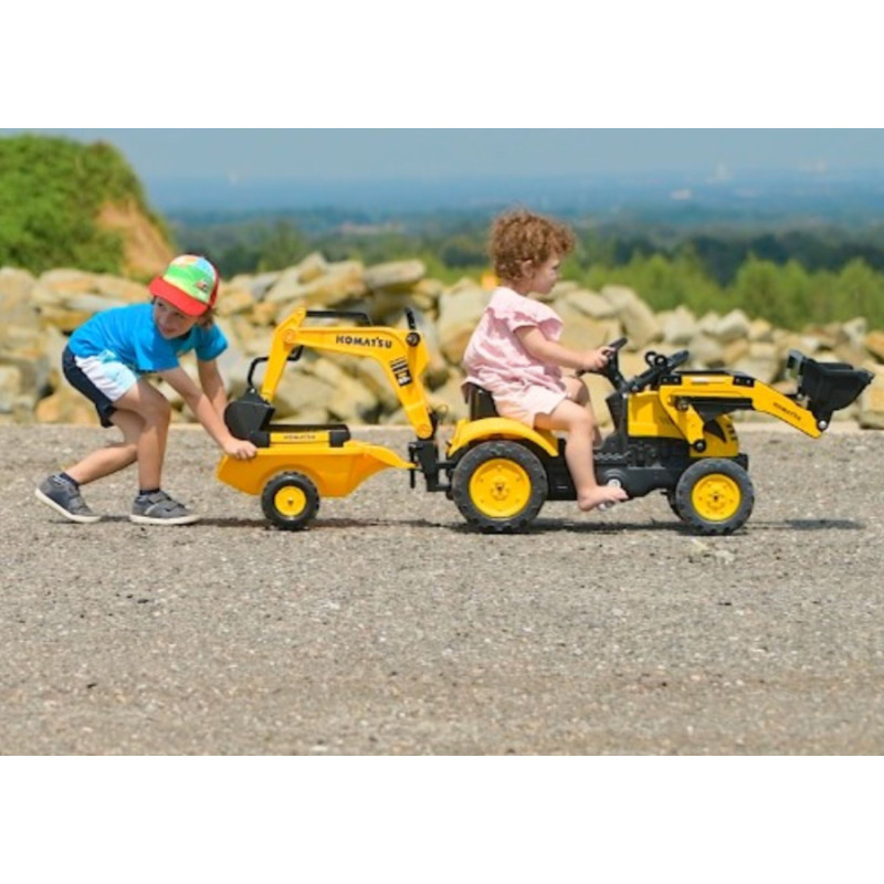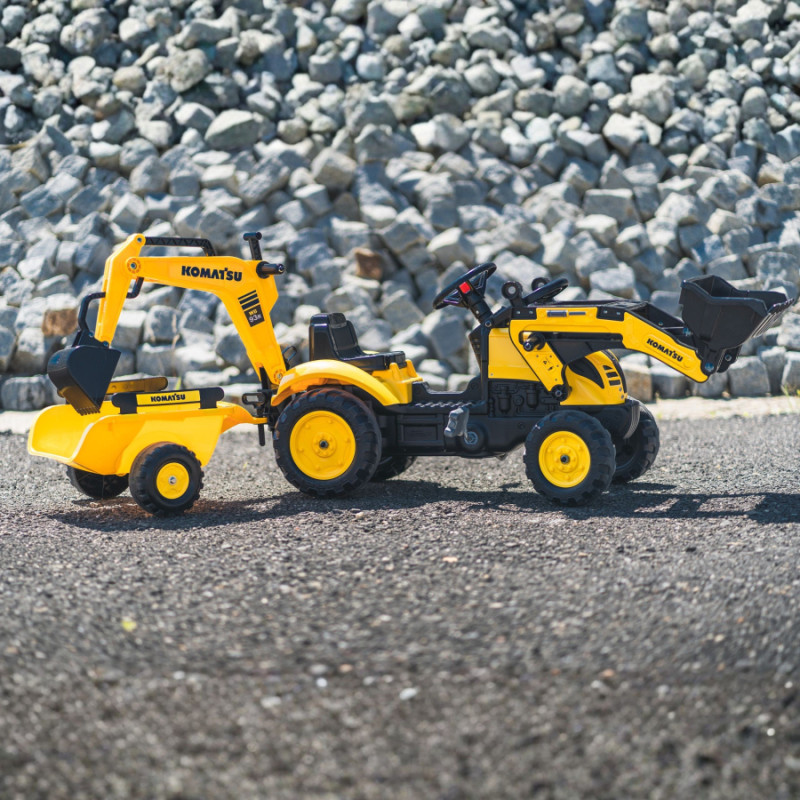Falk Komatsu Pedal Tractor with Excavator Bucket and Trailer