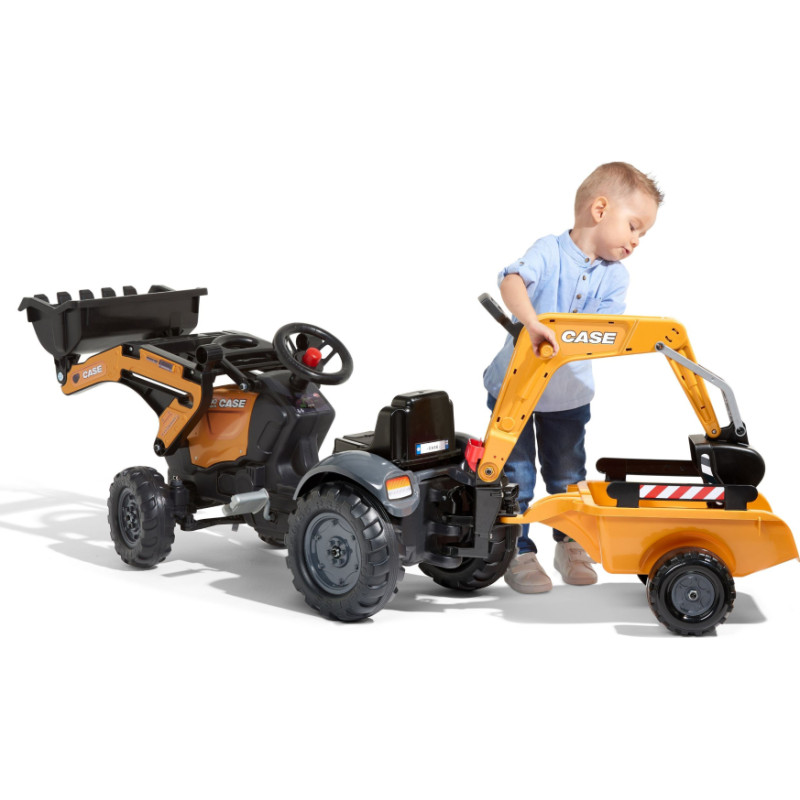 Falk CASE Pedal Tractor with Excavator Bucket and Trailer 2-5 years