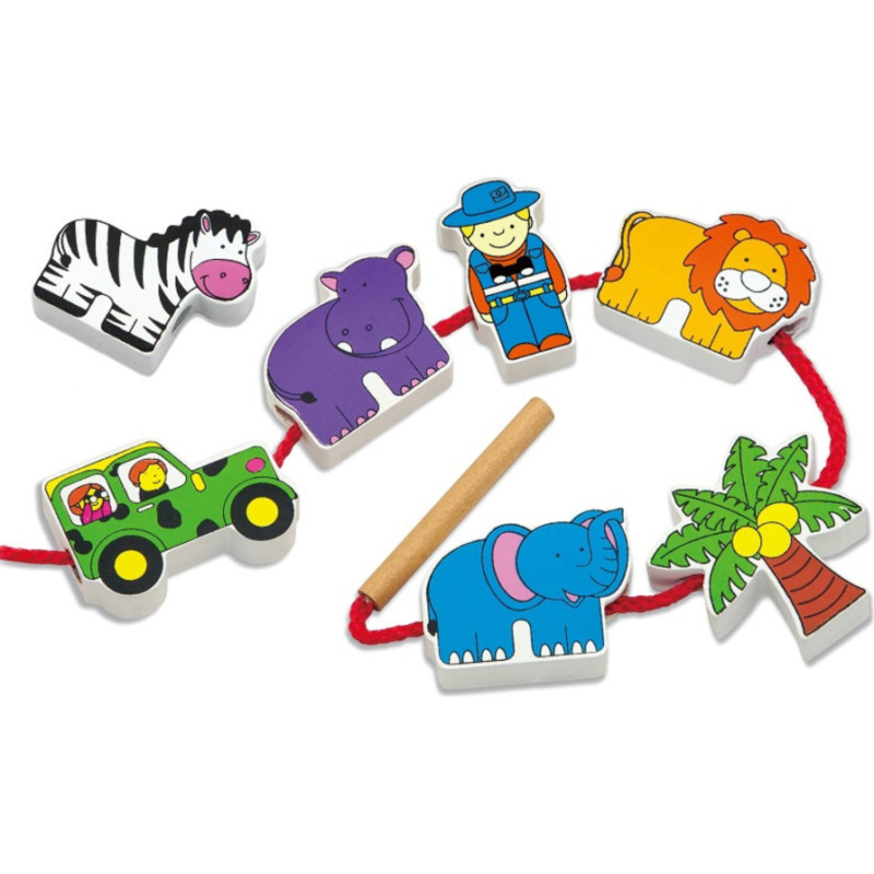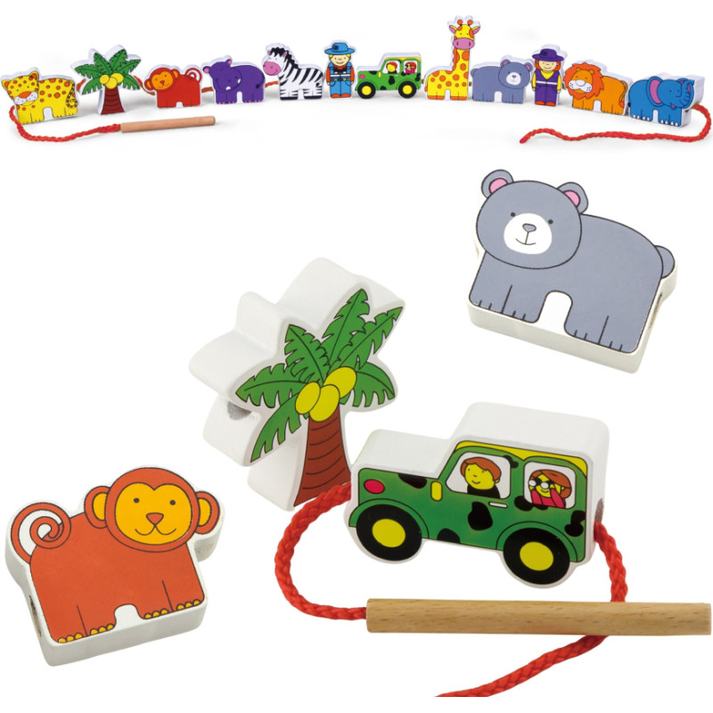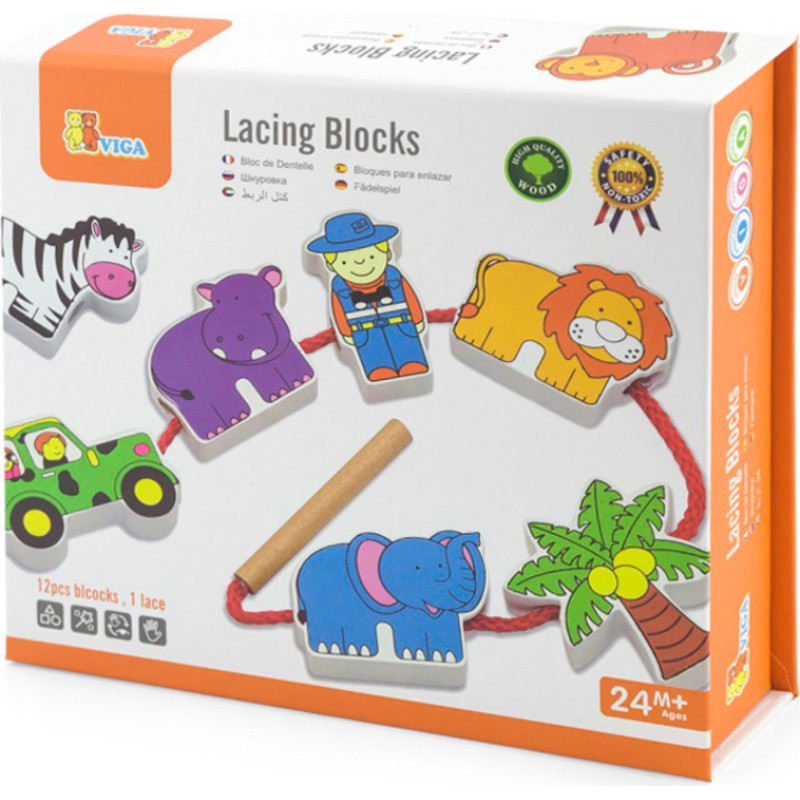 Viga Toys VIGA Wooden Threading Game Intertwining Blocks Safari ZOO Montessori